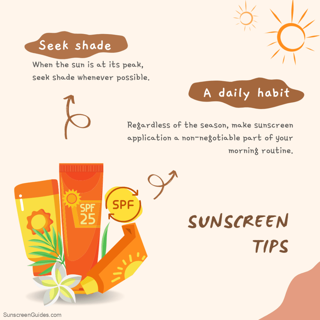 Seek shade: When the sun is at its peak, seek shade whenever possible. This is especially important during the summer months when the sun’s rays are strongest. Remember that shade doesn’t provide complete protection, so combine it with sunscreen for optimal results.